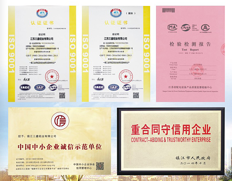江苏三鑫铝业有限公司位于丹阳市丹北镇,地理位置优越,交通运输十分便捷。 公司成立于2010年8月,注册资金2080万元。厂区面积4万多平方米,建筑面积近3万平方米,现有员工200多人。专业从事研发和生产工业铝型材,公司现有国内先进挤压生产线8条,氧化、深加工生产线多条,年生产能力达3万吨,氧化生产能力达2万多吨。公司配备了国际先进的直读光谱仪、投影仪、拉力测试仪等检验检测设备。